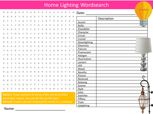 Home Lighting Wordsearch Interior Design Starter Settler Activity Homework Cover Lesson